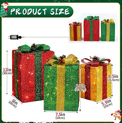 Set of 3 Tall plug in Rectangular Christmas Lighted Gift Boxes - 60 LED Lighted Christmas Box - Light Up Xmas Tree Skirt Ornament Outdoor/Indoor Vertical Yard & Porch Decor more . . .
